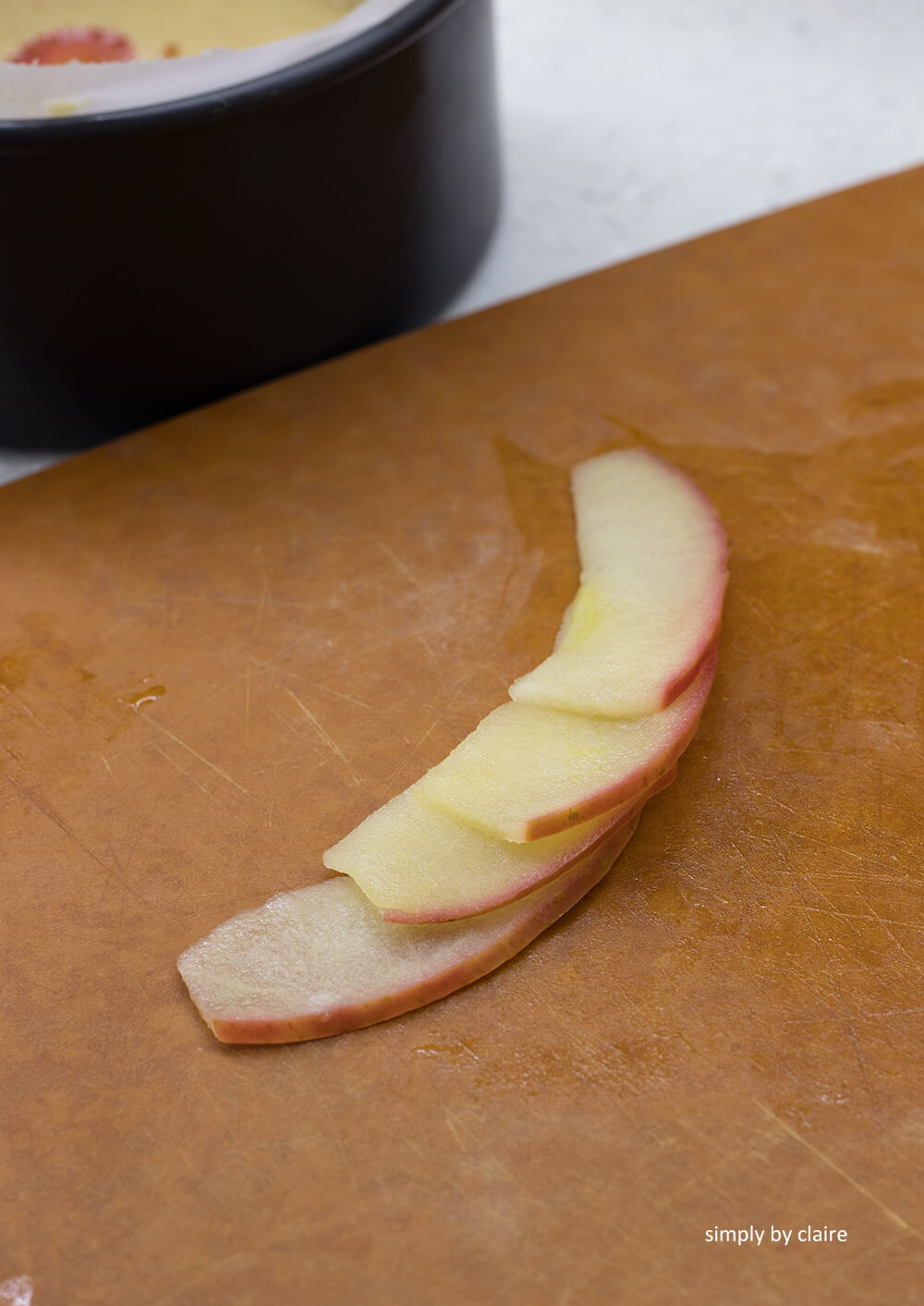 - 蘋果片要稍微煮軟出水,可用微波也可以直接放進鍋裡小火加熱一下就好,比較好塑型,也比較不會造成蛋糕太濕。