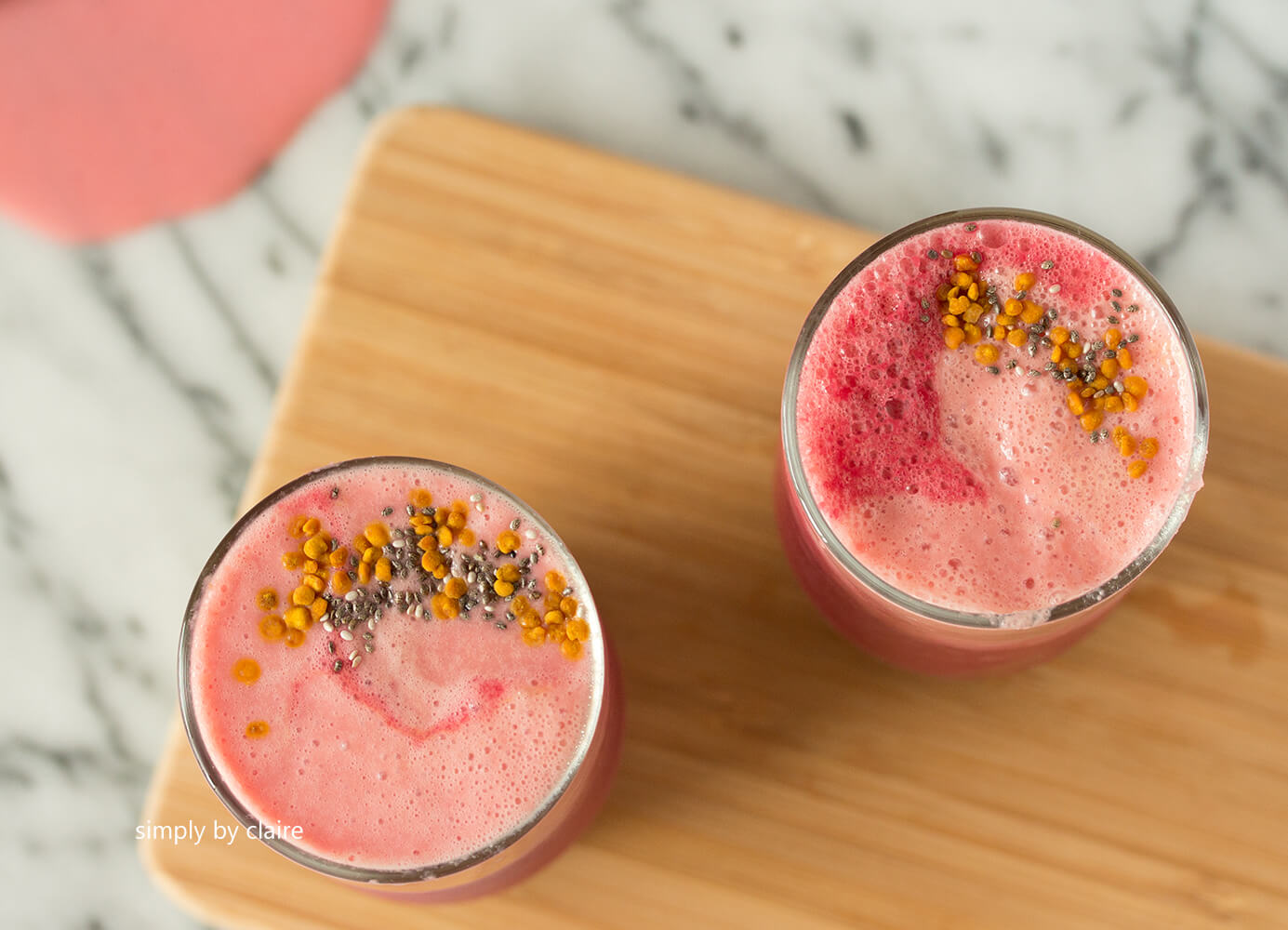 5. 灑上超級食物如花粉、奇亞籽作裝飾,好好欣賞自己的作品,然後喝掉!!