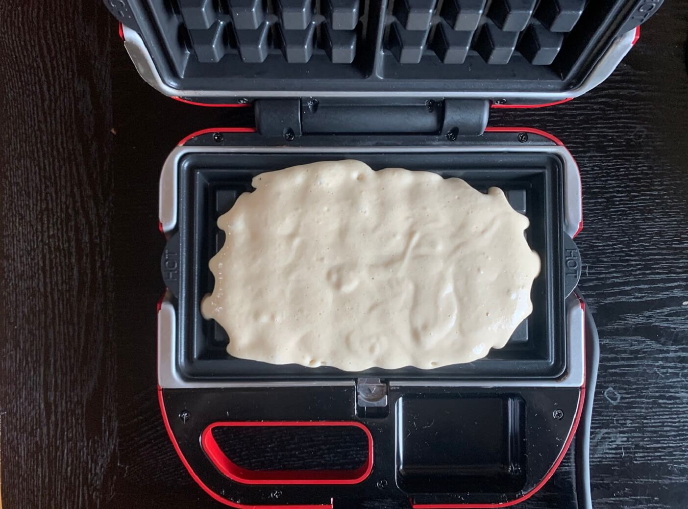 - 我用的是vitantonio鬆餅機,加熱時間約4分鐘,時間到後可以打開看一下顏色,不滿意再增加1分鐘。請依自家的鬆餅機功率調整時間。