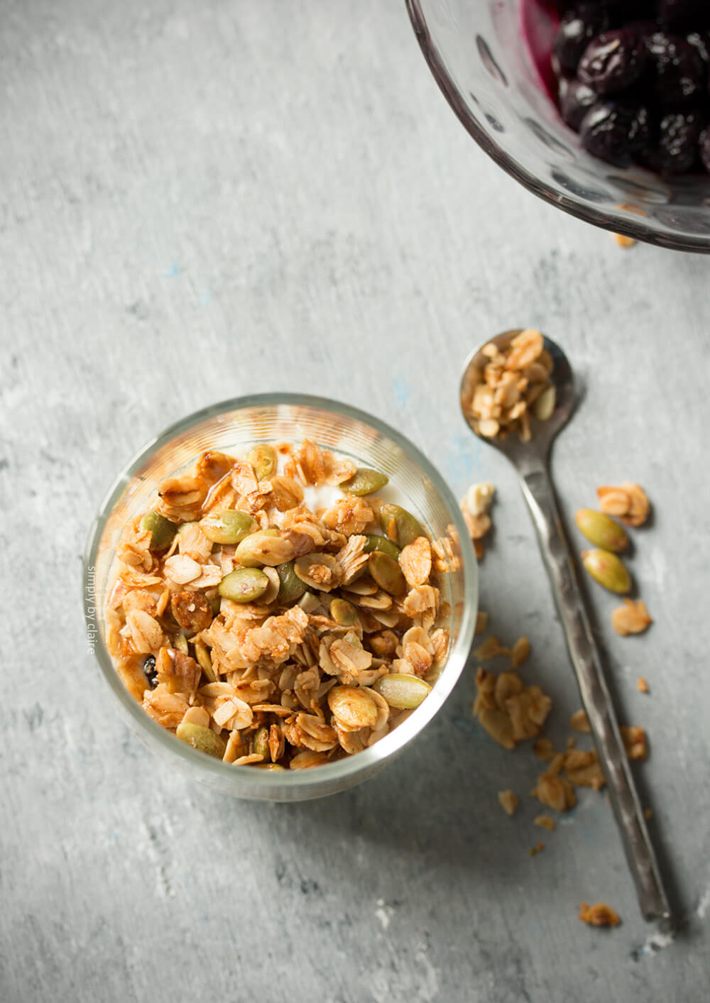4.堅果 : 我最近愛上南瓜子所以加進來。櫃子裡現成有的核桃也放進來,創造多層次口感。