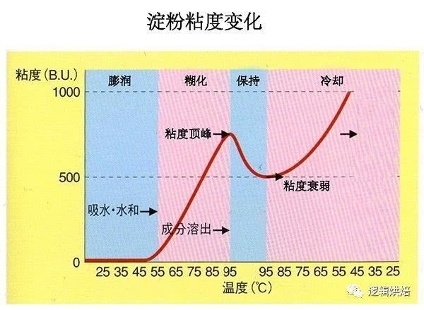 麵粉開始糊化的溫度是65度C (也有文章說是60度、或50度C),達到高峰的溫度為95度。
