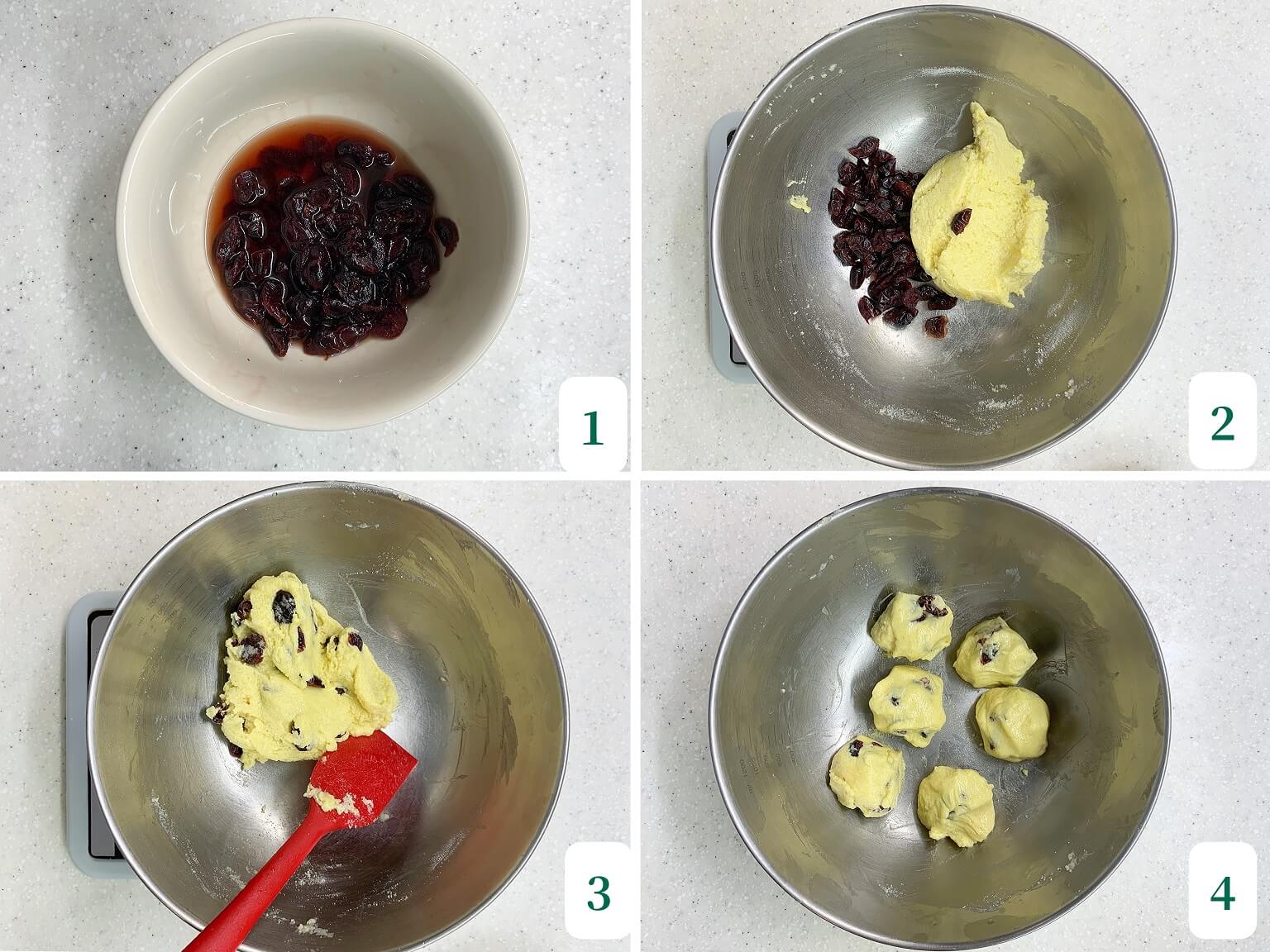 - 把蔓越莓乾泡在威士忌裡(或任何喜歡的酒),大約15分鐘後,把蔓越莓擠乾乾備用。