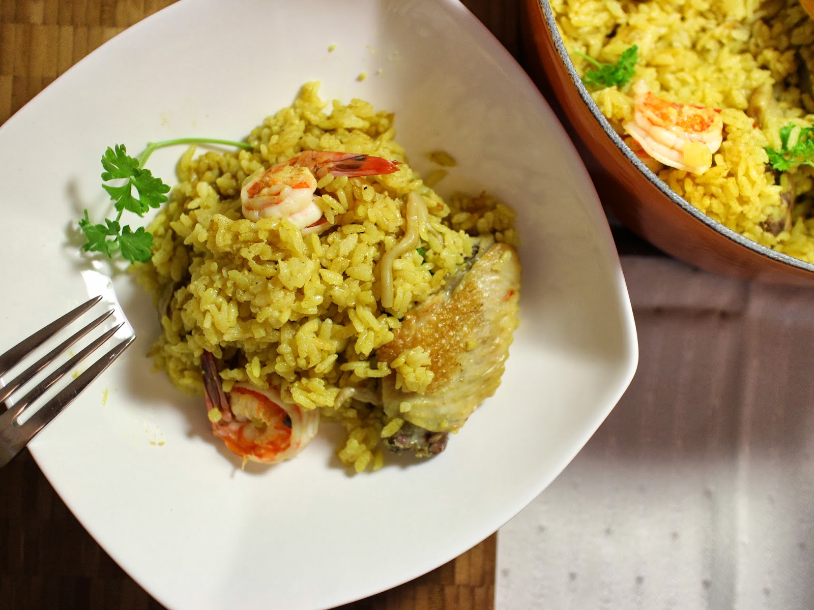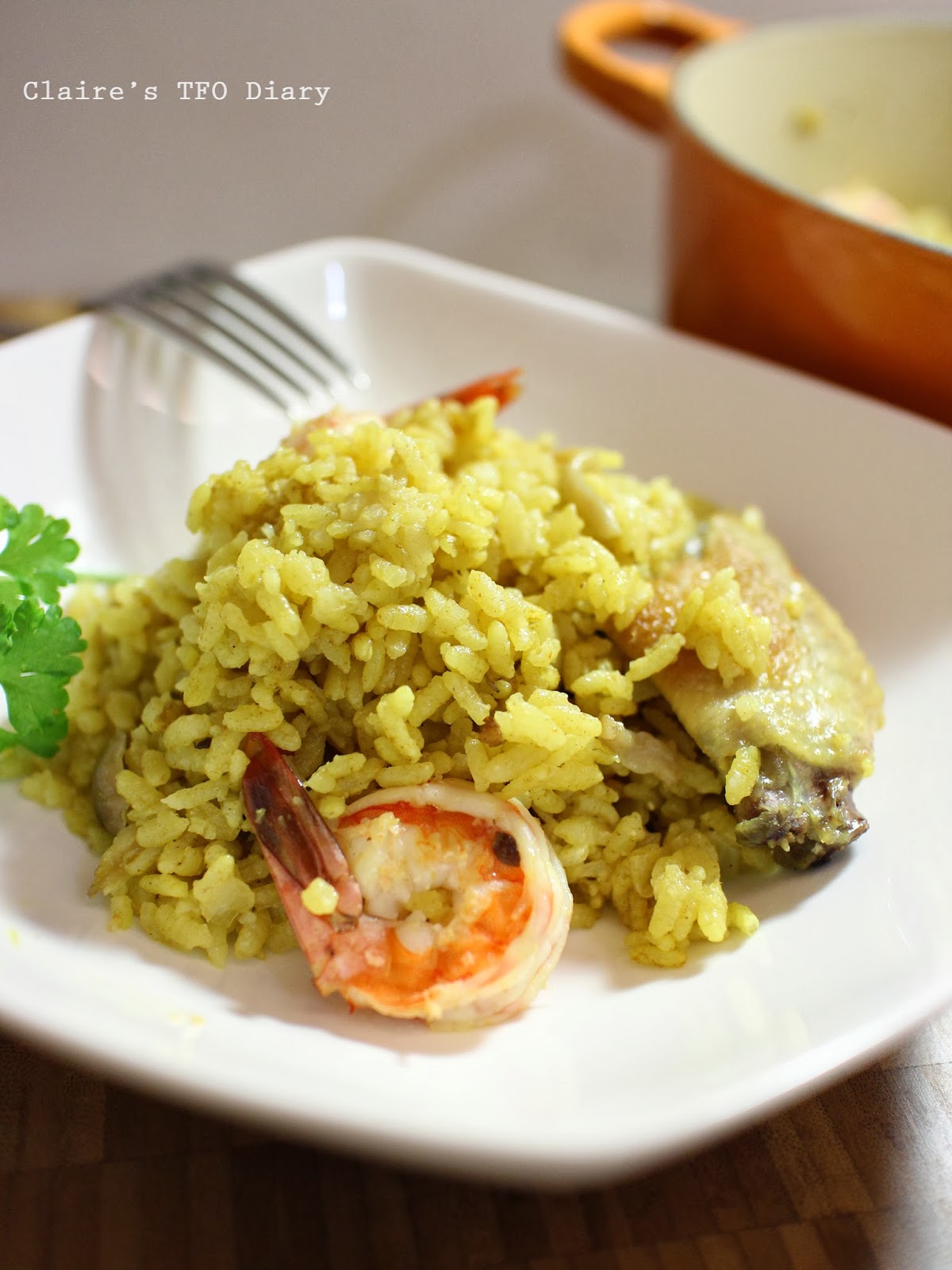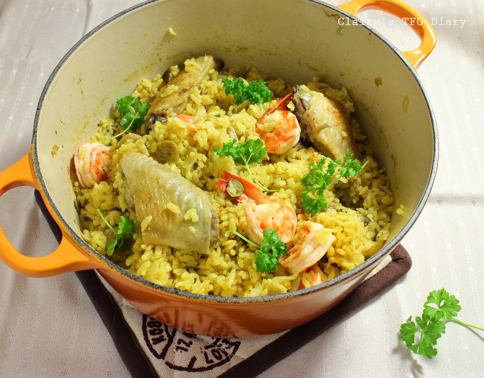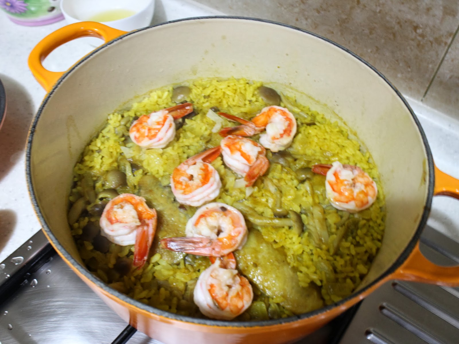 5. 承 4,用大火煮開後,蓋上鍋蓋轉最小火再煮15分鐘,關火,悶15-20分鐘。打開鍋蓋放入蝦子,把飯拌鬆即可上桌。I know,我的煮飯時間跟LC官網教的不同,但就是要煮這麼久飯才熟啊 (攤手),所以大家一定要視自家瓦斯爐的火力調整時間蛤~
