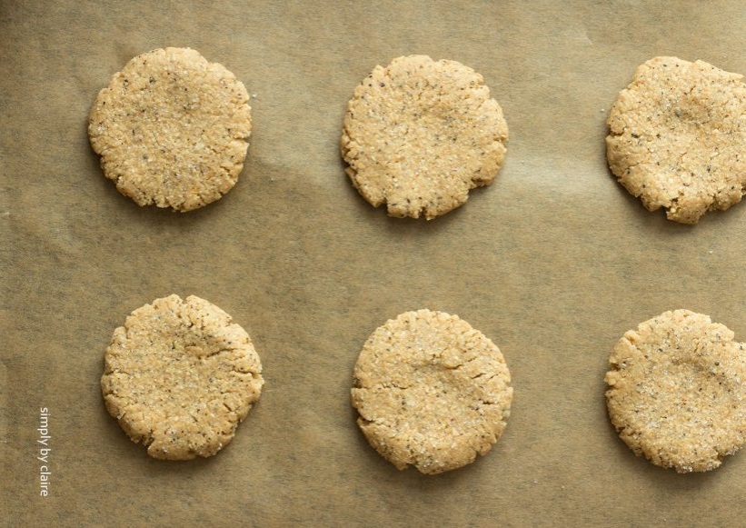 - 壓扁後的餅乾放在烤盤上,餅乾中心再壓得比周圍薄一點,送進預熱過的烤箱,以170度C烤15-20分鐘,或是烤到餅乾上色為止。